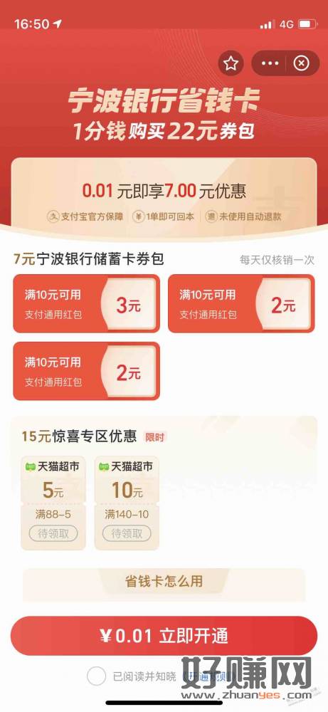 支付宝宁波银行省钱卡