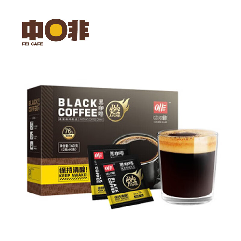 中啡(ZHONGFEI)速溶黑咖啡 未添加糖纯黑咖啡 80条160克