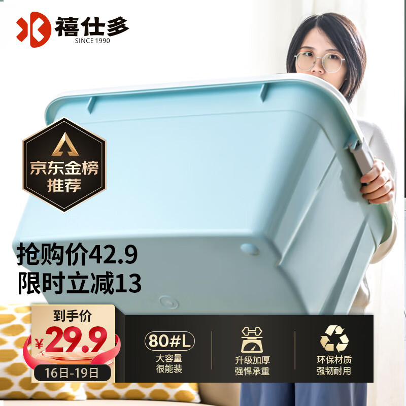 禧仕多塑料收纳箱大号 80L蓝 玩具整理箱