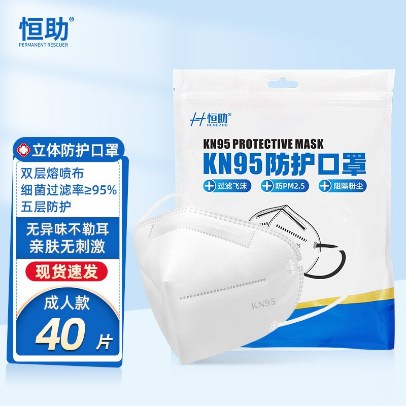 恒助 成人一次性KN95防护口罩40片,8.9亓包邮