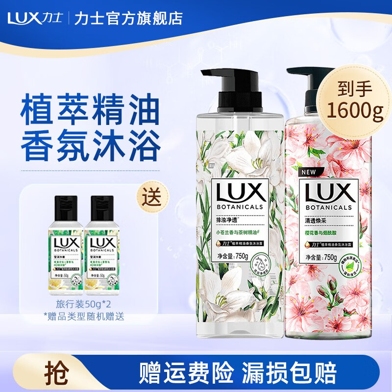 力士 植萃沐浴套装 小苍兰+樱花1500g+旅行装50g*2