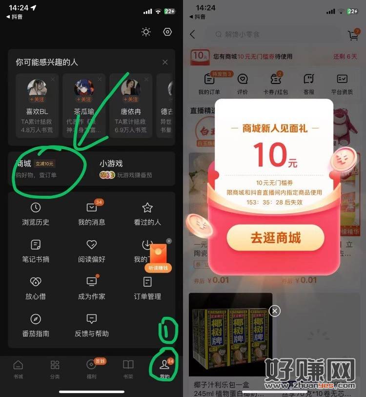 番茄小说app-我的-商城,新老号都有无门槛券,去领了白嫖