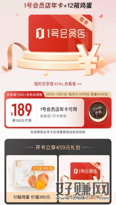 抢1号店198-189会员劵(限量4000张),劵后9元