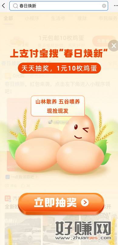 [ 每天抽1元10枚鸡蛋 ]支付宝app搜索“春日焕新