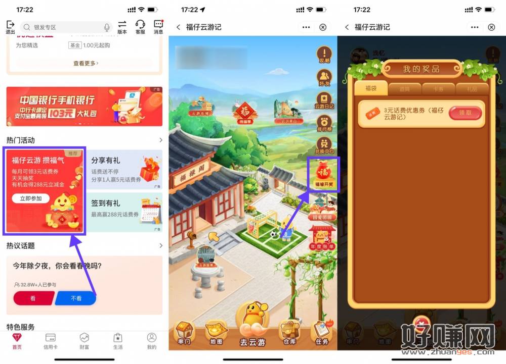[ 中行福仔云游记领3元话费券 ]新一期!中行APP首页下拉找到