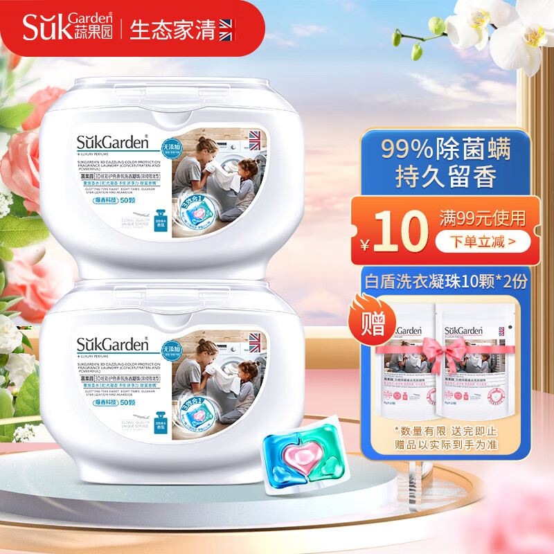 蔬果园 洗衣凝珠100颗(2盒)三合一除螨除菌