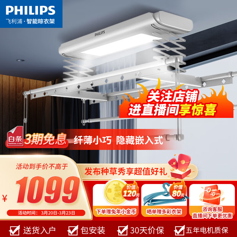 【自营】飞利浦(PHILIPS)嵌入式遥控自动升降晾衣架