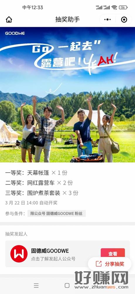 关注微信公众号【固德威GOODEW】回复“我要去露营” 参与抽奖 奖品:帐篷 露营车 开奖时间:3月22日