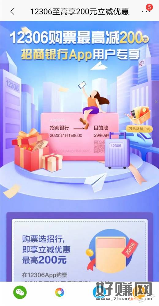 招行app 一二306买火车票最高优惠200