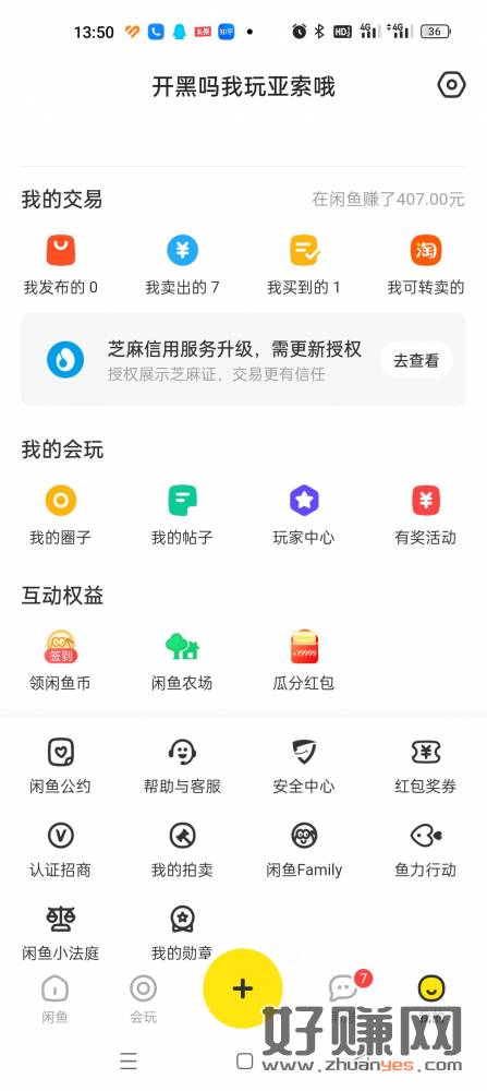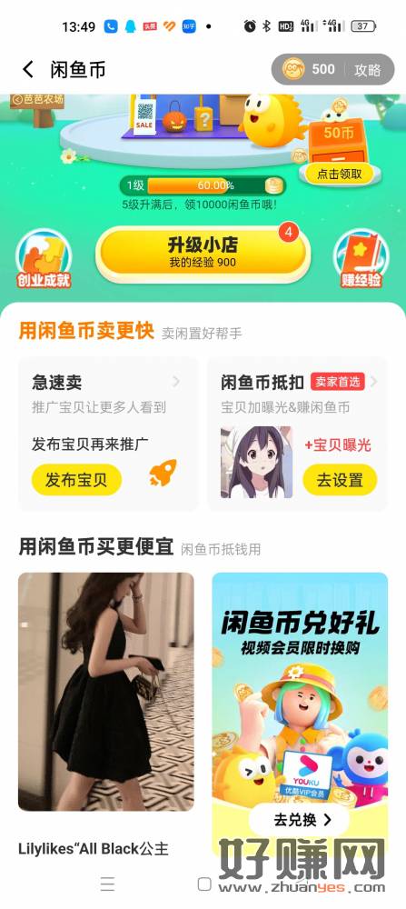 咸鱼-我的-领闲鱼币,可兑换3天优酷会员