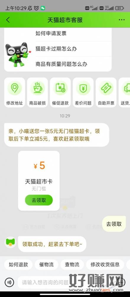 天猫超市,我的专属客服,点进去就会弹出来。不确定是否每个人都有,可以试一下。