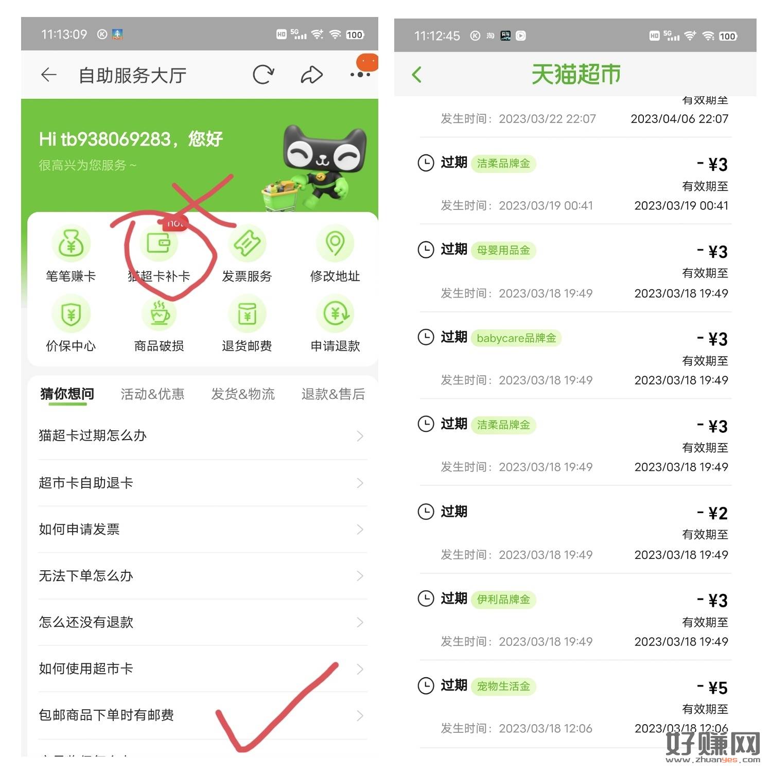 之前领了天猫品牌金的现在可以去找客服补卡了不要点那个猫超卡补
