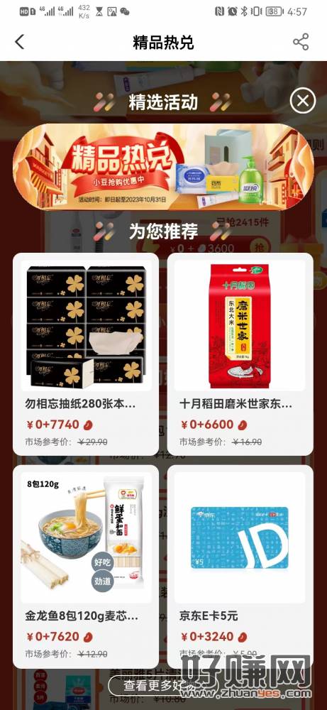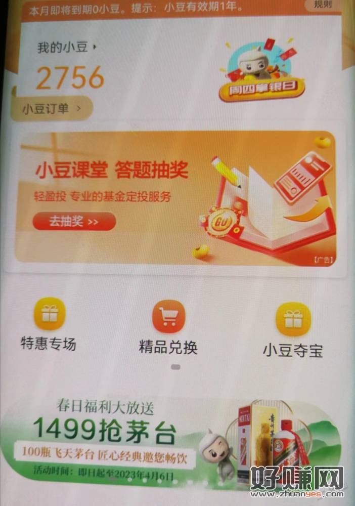 农行app--小豆--精品兑换(小豆课堂下面三个可以滑动中间那个)--右侧悬浮离合更多好物