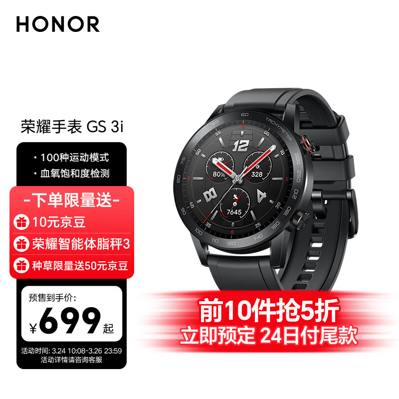 荣耀 GS 3i 智能手表 46mm,定金100元24日10点08尾款