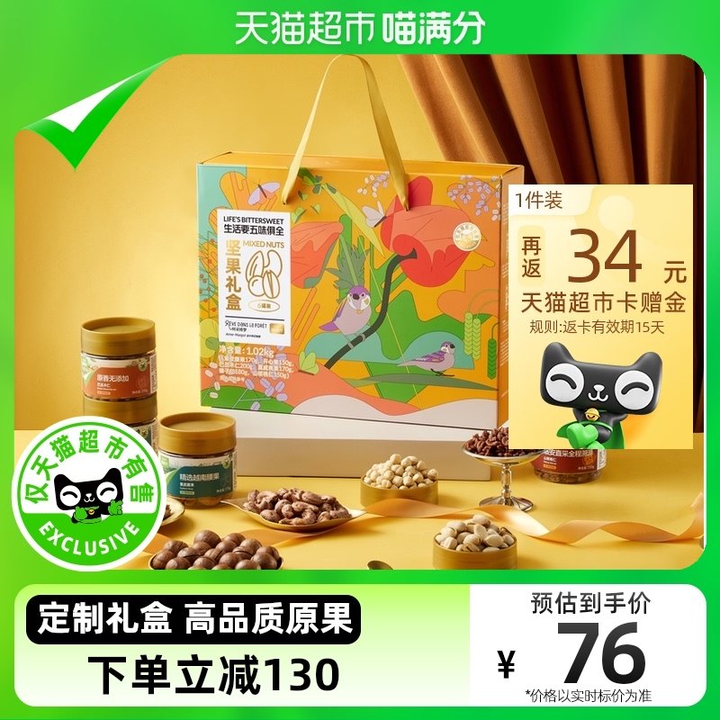 1杭州消费奍,如有200-60,喵满分自有品牌坚果礼盒1020g高端精品罐装