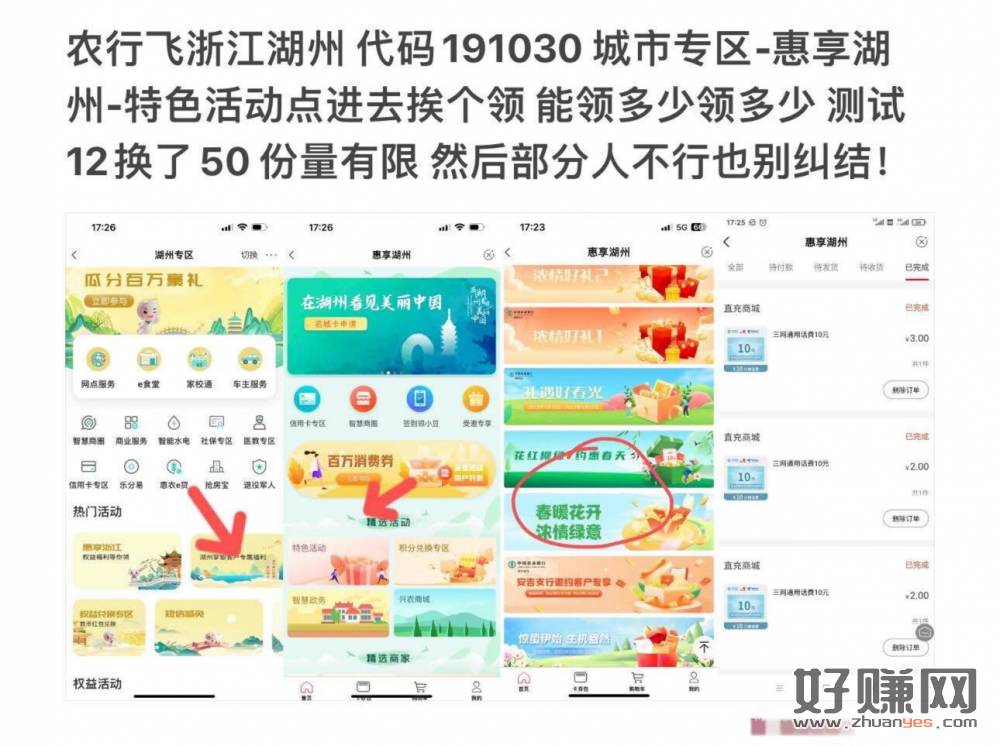 农行飞浙江湖州 流程看图 能领的可以去试试