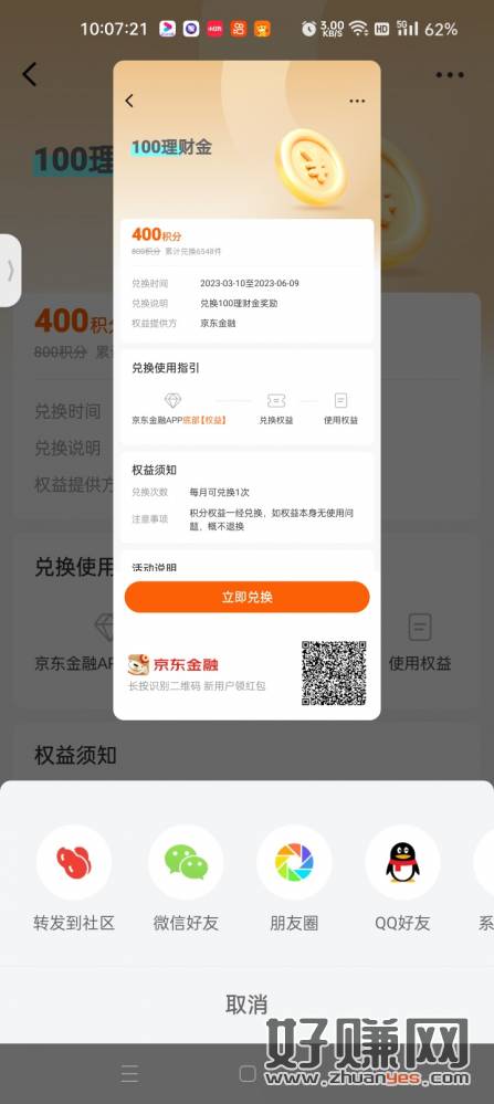 京东金融400积分换100理财金(1元),积分做做任务简单拿