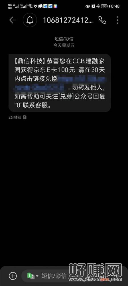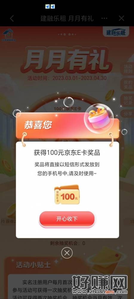 建行APP,搜建融家园,水了100元E卡。