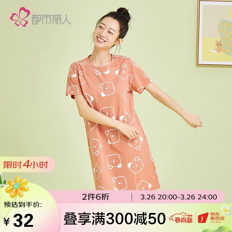 都市丽人 女士家居休闲针织棉质睡裙,先入会,任意1款27亓+u