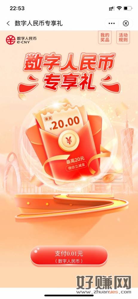中行定位广州数币0.01抽最高20微信立减,左下角优惠生活数币