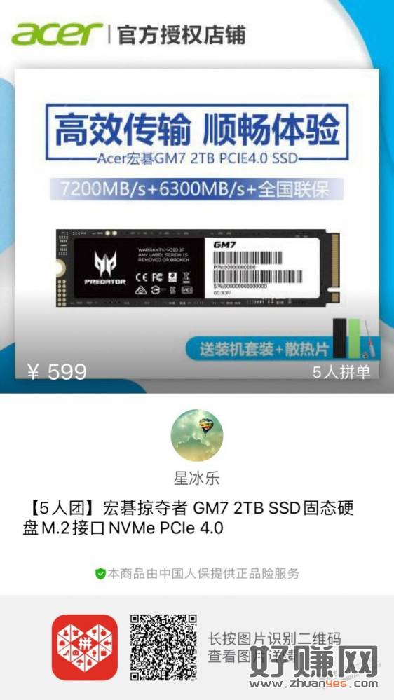 acer的2T盘价格才500多,应该是史低了,用的是长江存储,5年质保 ,但是自己搞不定要5人团才行,有没有兄弟一起上的?