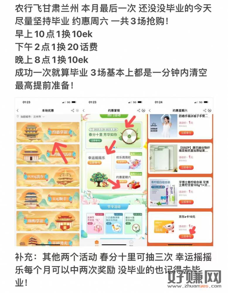 【农行】飞甘肃兰州 还没毕业的 本月最后一天有机会毕业了 流程看图 10点抢