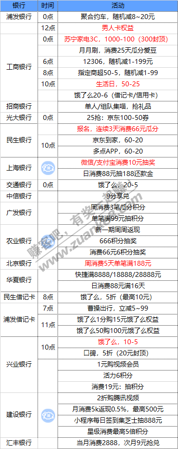 使用指定xing/用卡每周消费满1000元,使用500积分兑换视频会员月卡、外卖20元券、酒店自助餐,数量有限,先到先得