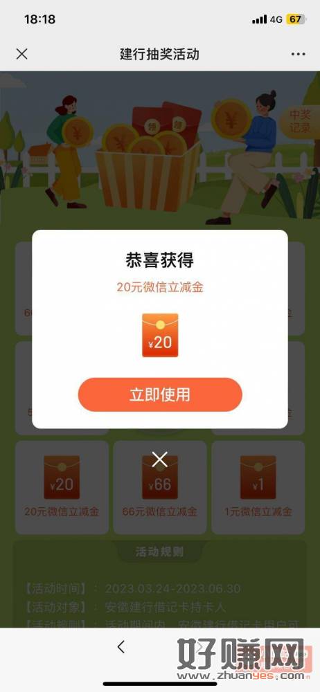 安徽建行去抽奖无限撸,一个微信号就是一次,当天到账不能用,第