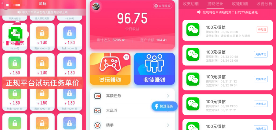 试玩如何单机一天收入150以上,可以同时做三个平台接任务,基本三四个小时可以达到这么多。