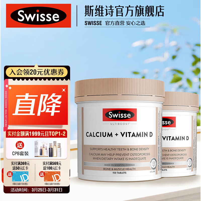 Swisse斯维诗 钙加维生素D片娘娘钙150片*2瓶