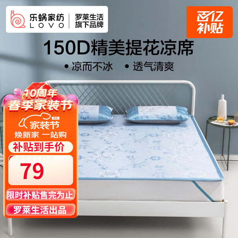LOVO乐蜗家纺 夏季提花冰丝夏凉席,1.5米床/150*200cm