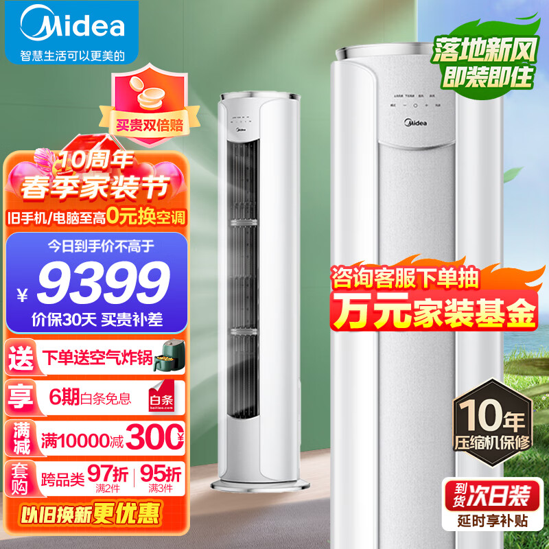 美的(Midea) 3匹 210m/h新风量舒适星SE无风感变频柜机空调