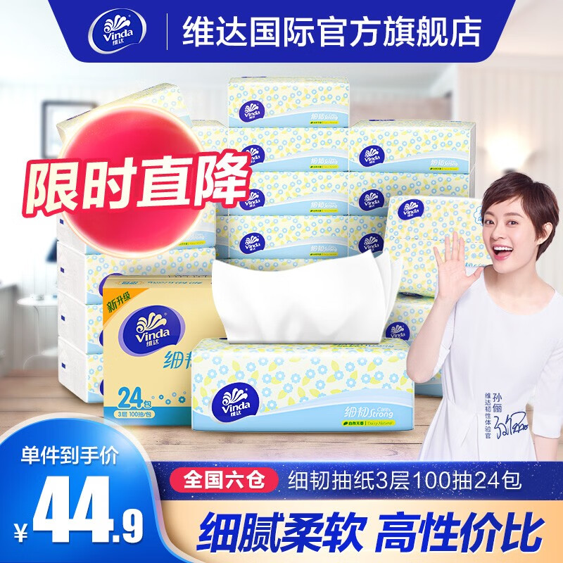 补贴直降,维达1.3/包,维达 细韧3层抽纸
