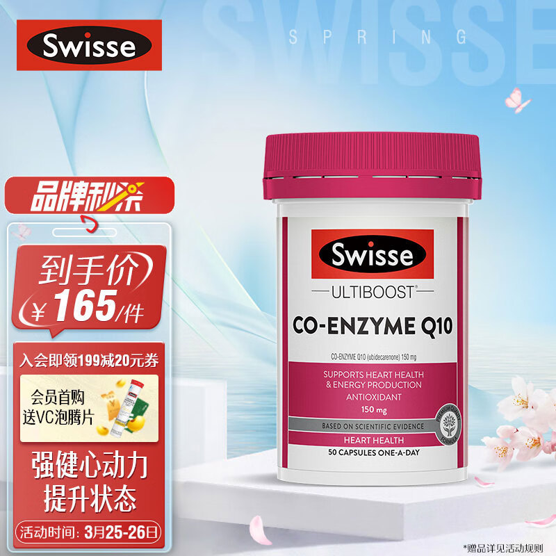 领99-20健康券,Swisse斯维诗 辅酶Q10胶囊 150mg 50粒/瓶