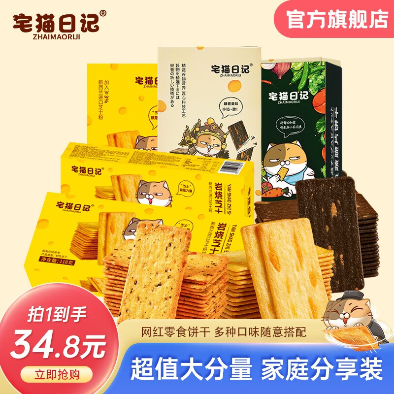 宅猫日记 岩烧芝士脆118g*5盒/多口味芝士饼干5盒