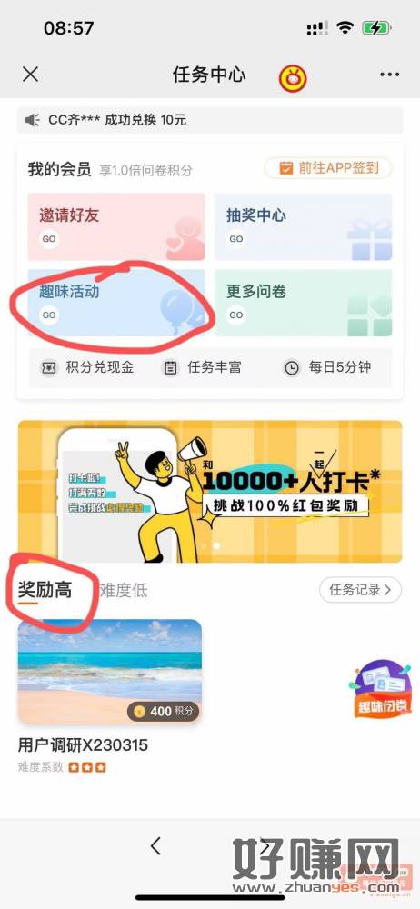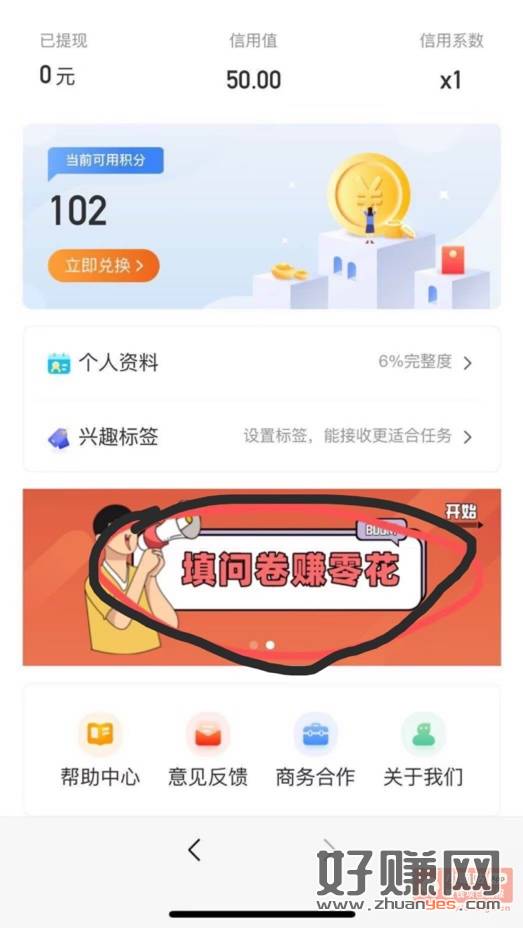 第四个,F,我知道了 最后点奖励高乱填一个问卷200积分提现1秒