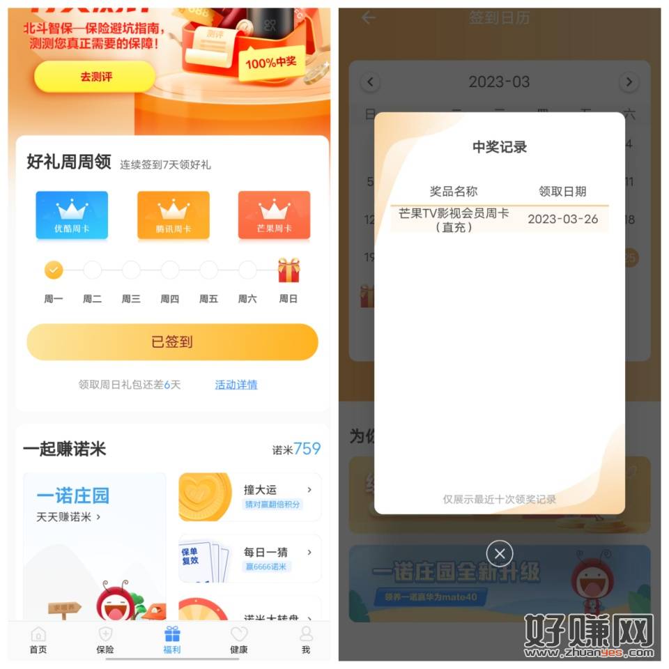 完美人生APP-福利-连续签到7天领视频会员周卡3选1,直充