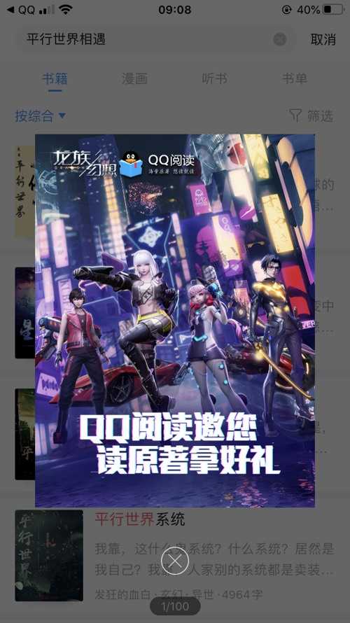 打开QQ阅读APP,搜索【平行世界相遇】,点击弹窗进入活动页面领取