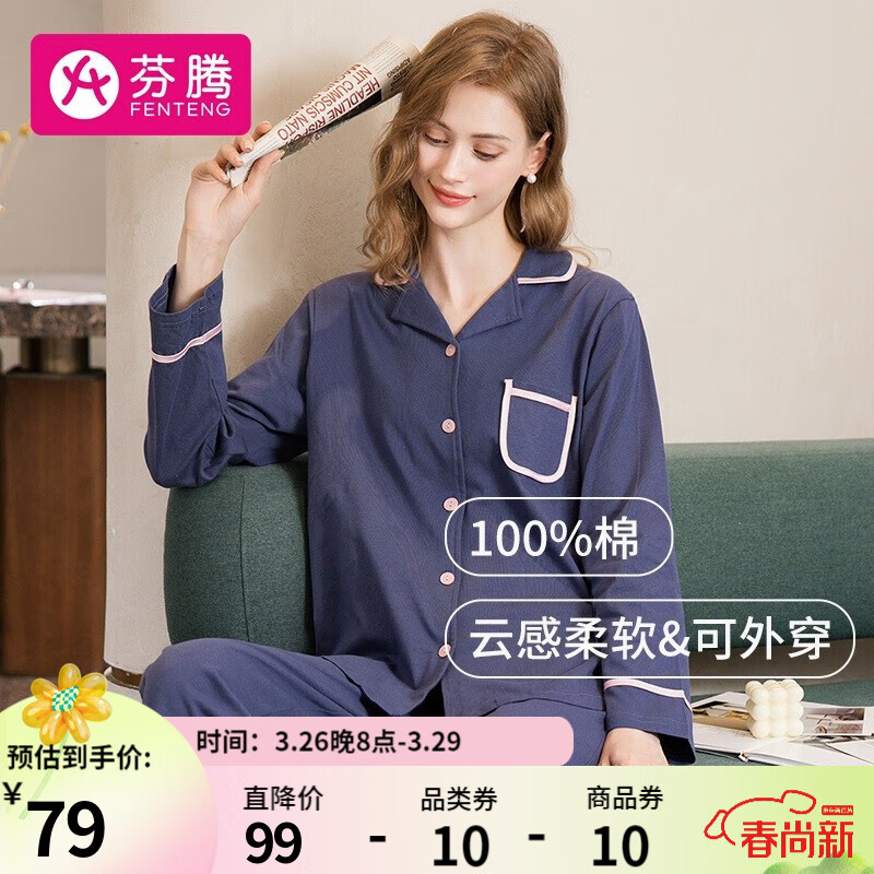芬腾 页面下领-8/-10补贴券,29.9亓 圆领短袖家居服睡裙