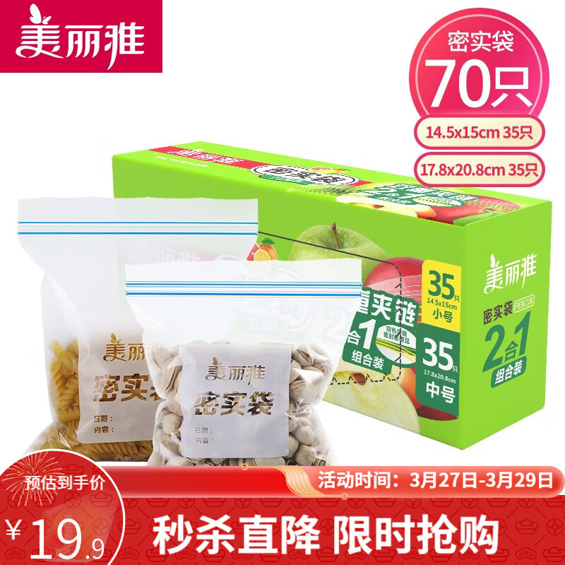 美丽雅 食品拉链式密封袋 小+中共70只