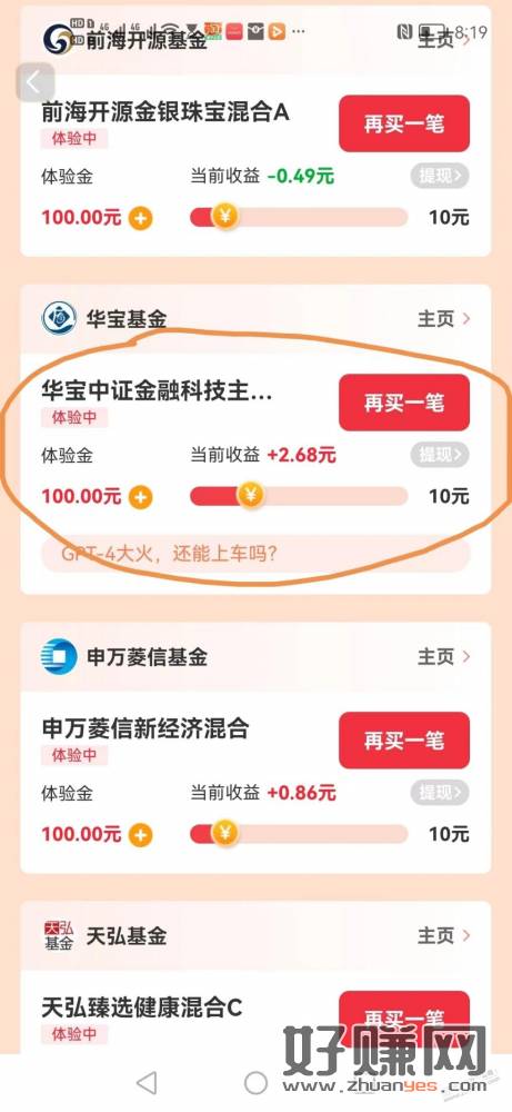 天天基金基金体验提现