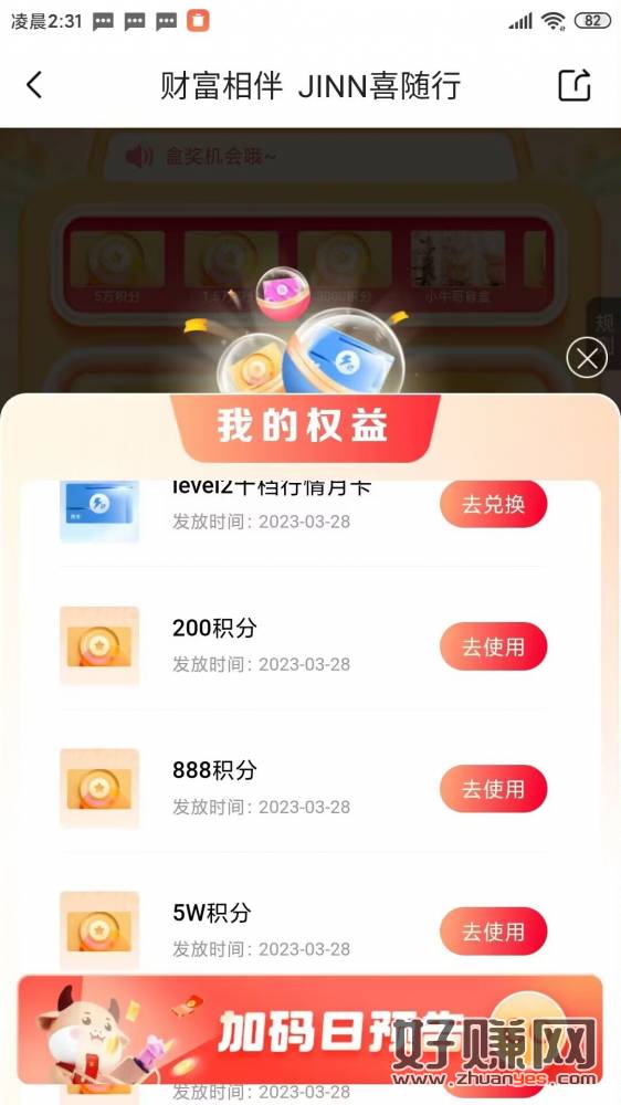 没有活动入口的就换号看看,那可以换号撸 然后中了积分去兑换