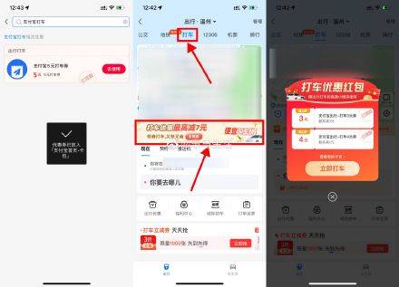 【支付宝领多张高德打车立减券】支付宝搜索“消费券”进入,再搜索“支付宝打车”领高德3~8元打车券,支付宝首页“出行”进入顶部“打车”点击横幅领取2~10元打车券