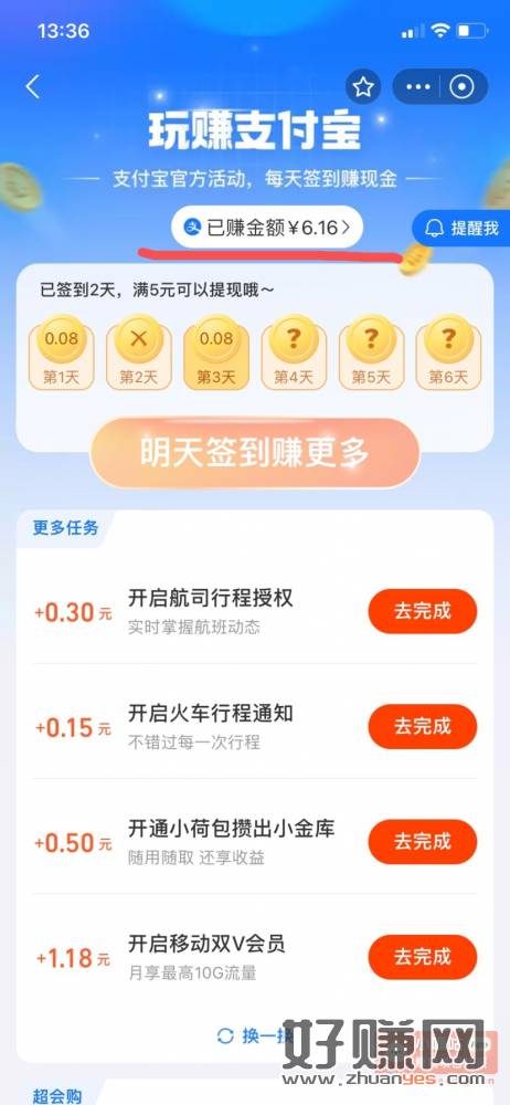 必得10r 支付宝搜索玩赚支付宝 进去做任务做完后提现就可以了秒到 然后在蚂蚁保去退保就可以了 我刚刚弄了10r 我前两天弄了 现在又可以弄了 大家去看看 不行的换号看看