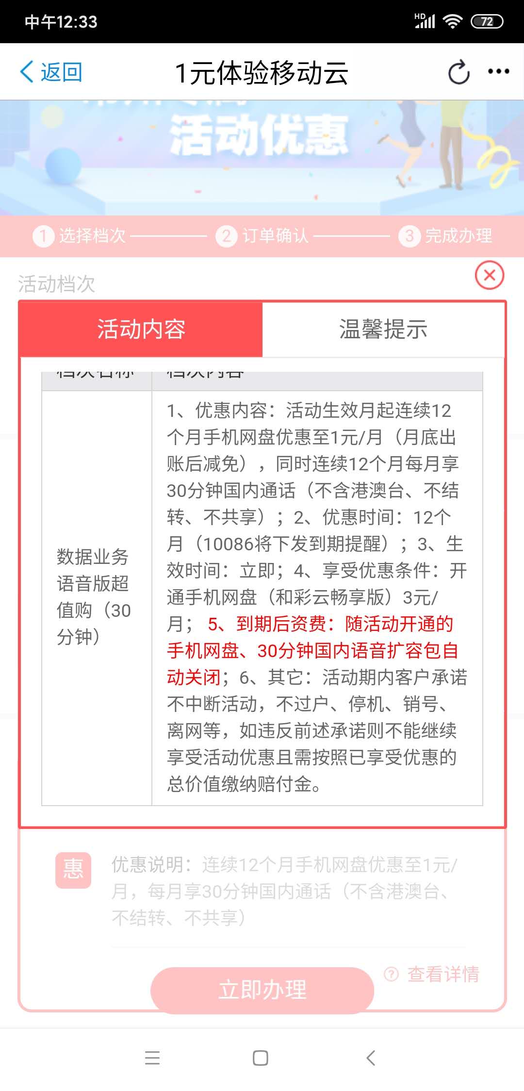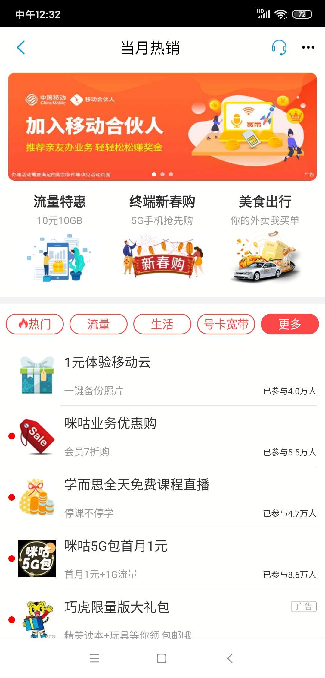 江苏移动掌上营业厅——当月热销——更多,里面有个“1元体验移动云”,实际点进去办理会赠送每月30分钟通话,活动一年。实测并非每个江苏移动的都有,我4个号,只有2个号能参加。9元保号套餐加1块钱,就有60分钟通话,还是挺划算的。有办理成功的记得给我加果哈