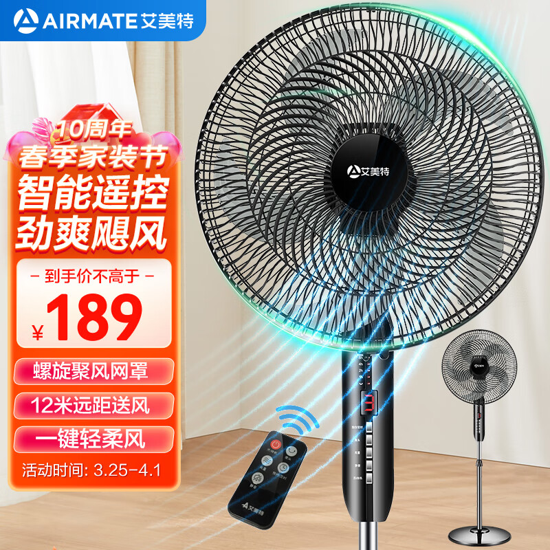 艾美特(AIRMATE)五叶家用智能遥控电风扇