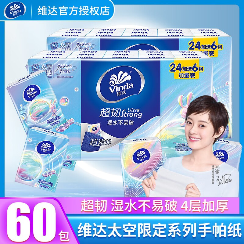 维达(Vinda)便携式超韧手帕纸60包,到手17.9亓,折合0.29/包