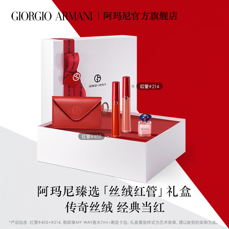 阿玛尼 限定口红双色礼盒(红管405番茄红+214奶杏色)