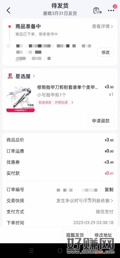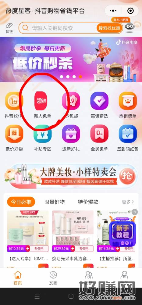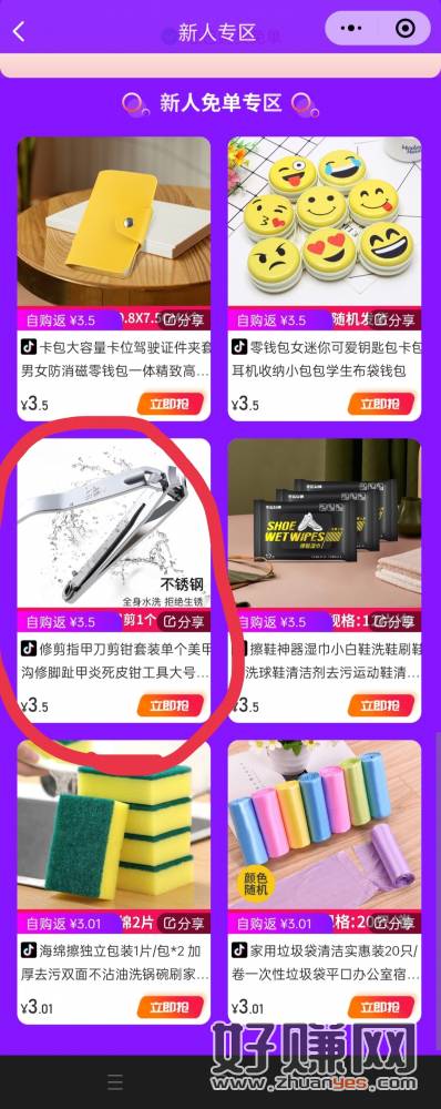 白嫖一个指甲钳。 进去小程序,点击“新人免单” 点击指甲钳图标的 “立即抢” 复制商品链接到抖音打开。直接0.01购买