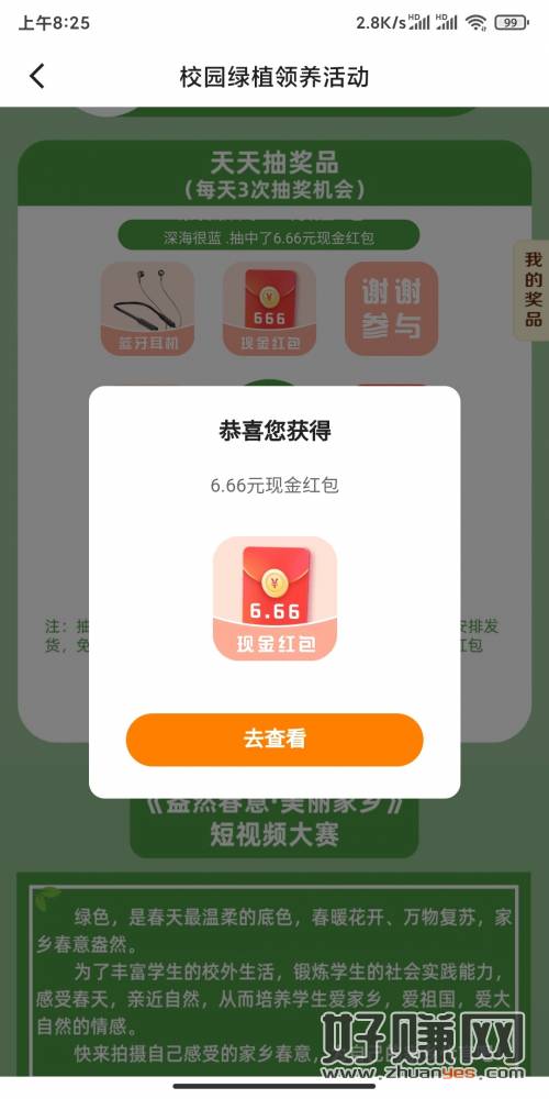 参加抽奖活动。我一次就抽到6.6